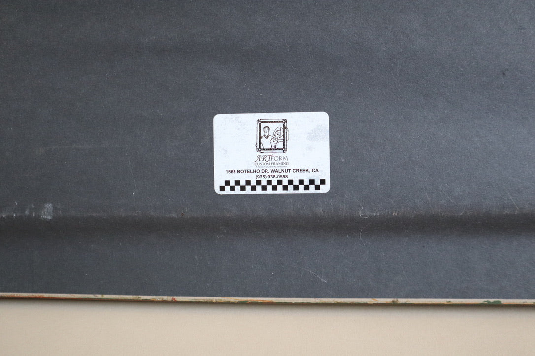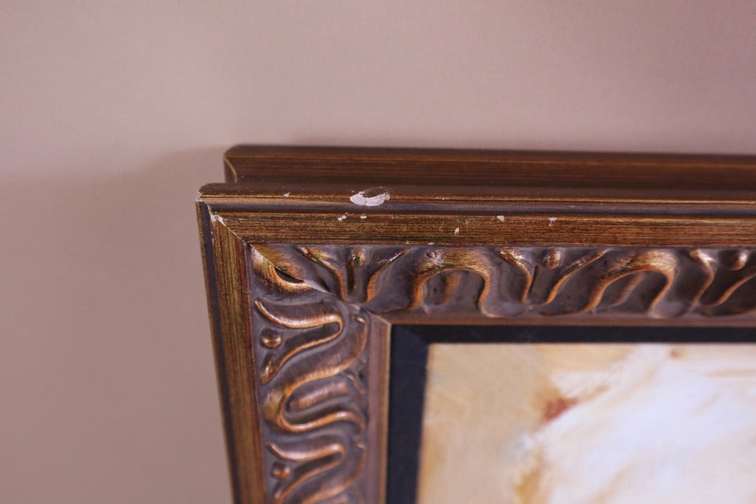 Large and colorful oil painting of a California vineyard placed in decorative frame. Signed by artist "Allison."