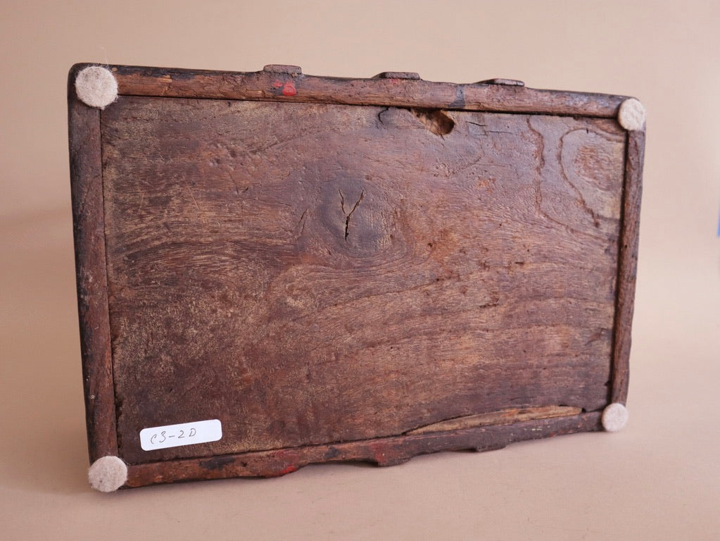 Sturdy lidded wooden box with (3) decorative conjoining red handles. Beautifully made with peg wood construction, and hand-painted with eye-catching glossy black and red lacquers.