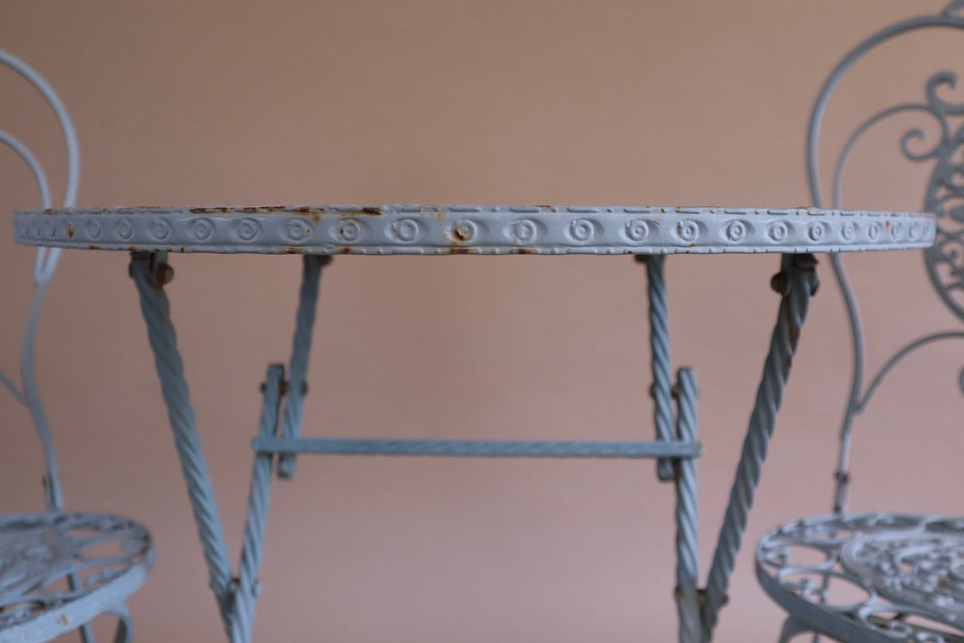 Antique French Blue Folding Bistro Table & (2) Chairs
