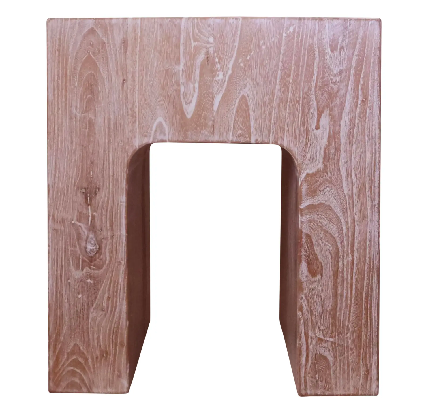 Vintage rustic modern side table constructed of multiple wood trunk pieces. Light finish and clean lines create a sleek silhouette.