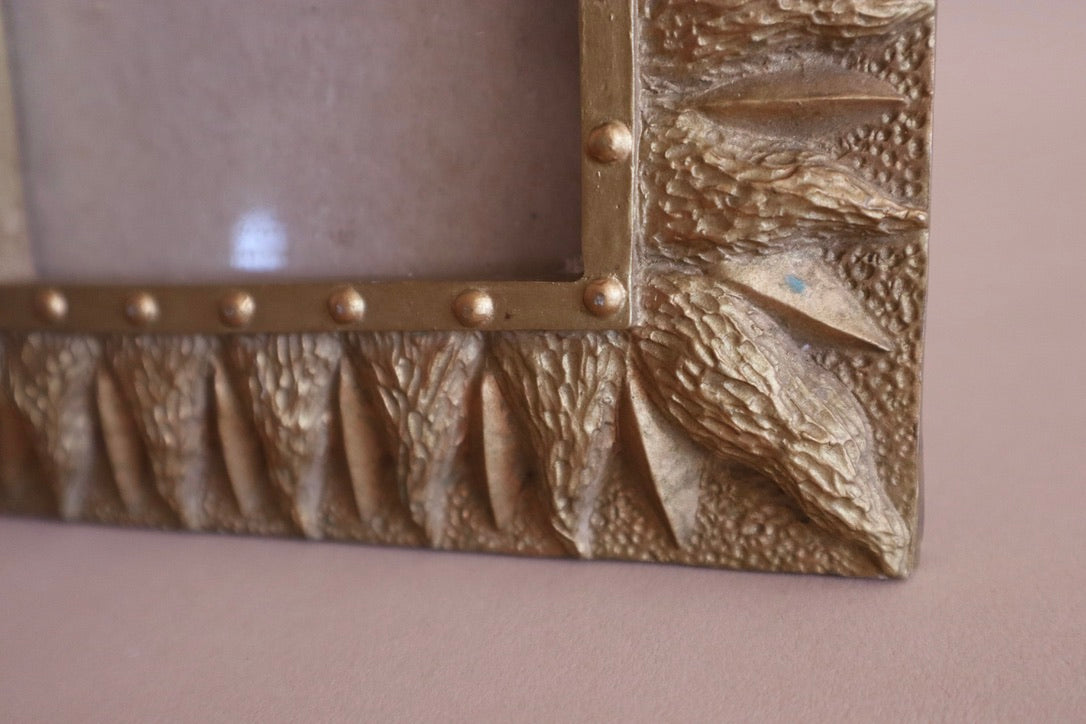 Vintage gold resin sun photo. Sun rays bursting towards the edge with studs surrounding photo opening.